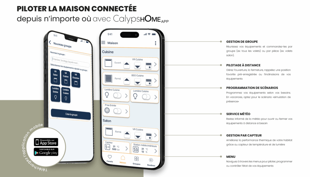 L’application CalypsHome permet de piloter les volets roulants et protections solaires directement depuis un smartphone.