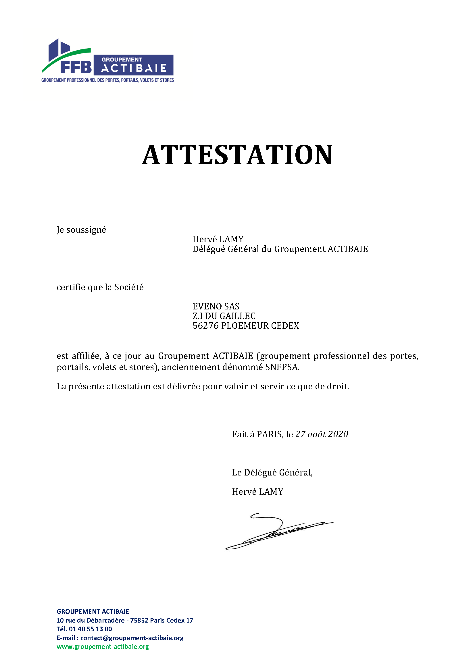 Charte environnementale & engagement durable Eveno Fermetures s’engage avec Actibaie Eveno Fermetures renforce son engagement environnemental en s’inscrivant dans la démarche portée par le groupement Actibaie.Une initiative collective visant à structurer et valoriser les actions durables de la filière. Charte environnementale & engagement durable Actibaie