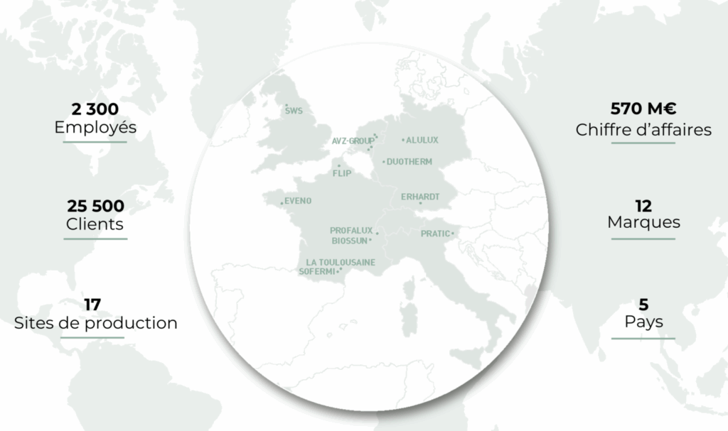 Créé en France, le groupe réunit plusieurs marques industrielles reconnues pour leur savoir-faire, leur ancrage local et leur exigence de qualité. Les 12 sociétés du groupe conçoivent et fabriquent des volets roulants, portes de garage, brise-soleil, stores et portails destinés aux professionnels du bâtiment avec un objectif commun : allier performance, durabilité et confort énergétique.