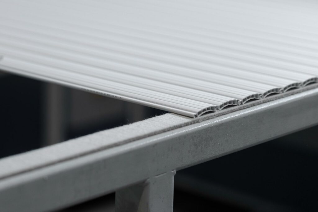 Production : injection de polyuréthane, profilage aluminium, assemblage et contrôle qualité.