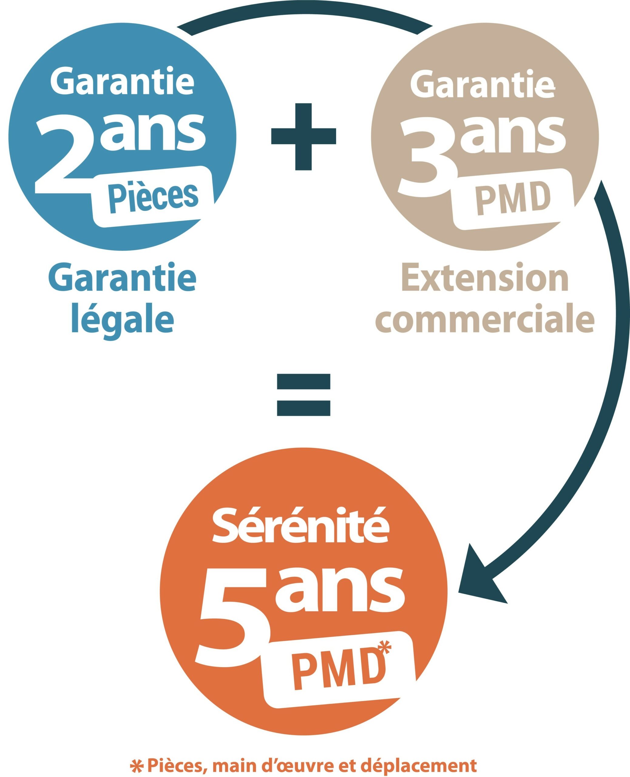 Les pièces de votre équipement sont couvertes conformément à la réglementation en vigueur. - Extension commerciale 3 ans PMD